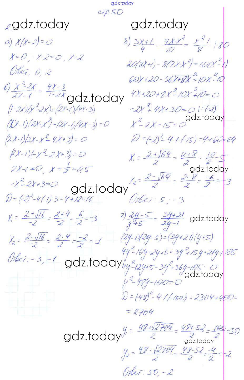 На страницах сайта gdz.today вы найдете учебный и вспомогательный материал, направленный на улучшения знаний школьной программы. ГДЗ - онлайн мир знаний Решение к части 2 50 Рабочей тетради по Алгебре для 8 класса Ключникова, Комиссарова Экзамен УМК 2013