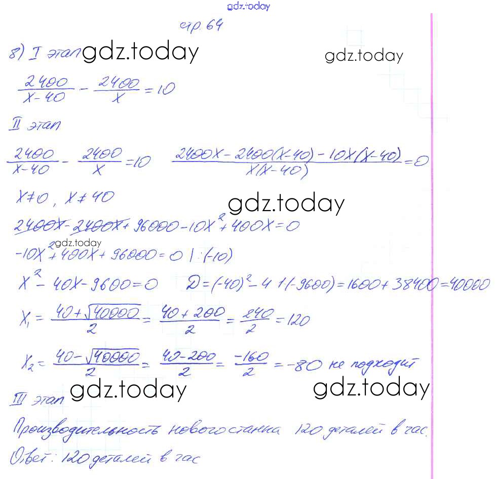 Ответы к Решение к части 2 64 Рабочей тетради по Алгебре для 8 класса Ключникова, Комиссарова Экзамен УМК 2013