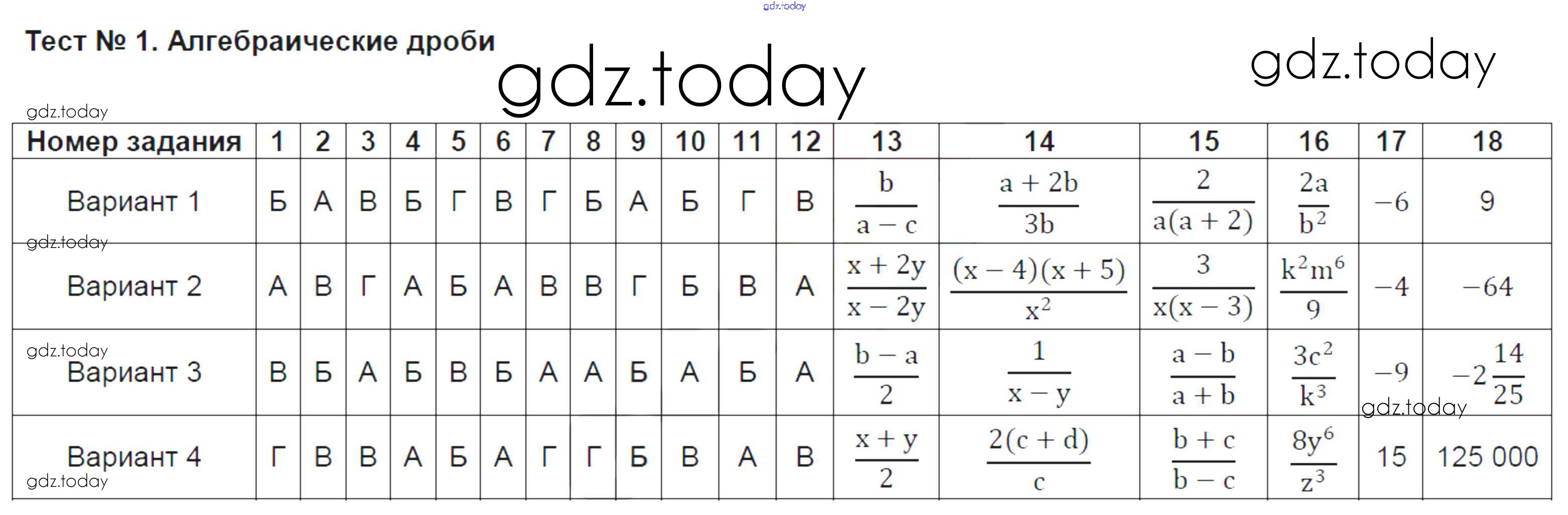 На страницах сайта gdz.today вы найдете учебный и вспомогательный материал, направленный на улучшения знаний школьной программы. ГДЗ - онлайн мир знаний Решение к тестам 1 Тестам по Алгебре для 8 класса Ключникова, Комиссарова Экзамен УМК 2011