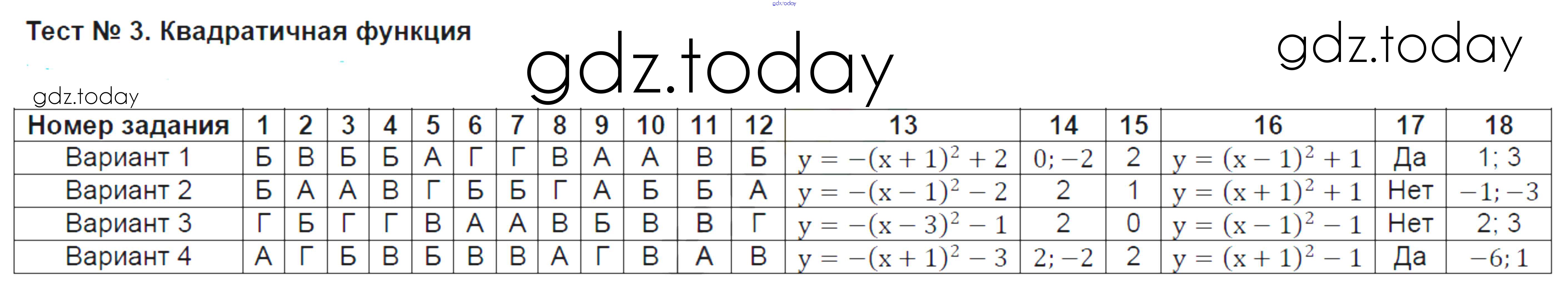 На страницах сайта gdz.today вы найдете учебный и вспомогательный материал, направленный на улучшения знаний школьной программы. ГДЗ - онлайн мир знаний Решение к тестам 3 Тестам по Алгебре для 8 класса Ключникова, Комиссарова Экзамен УМК 2011