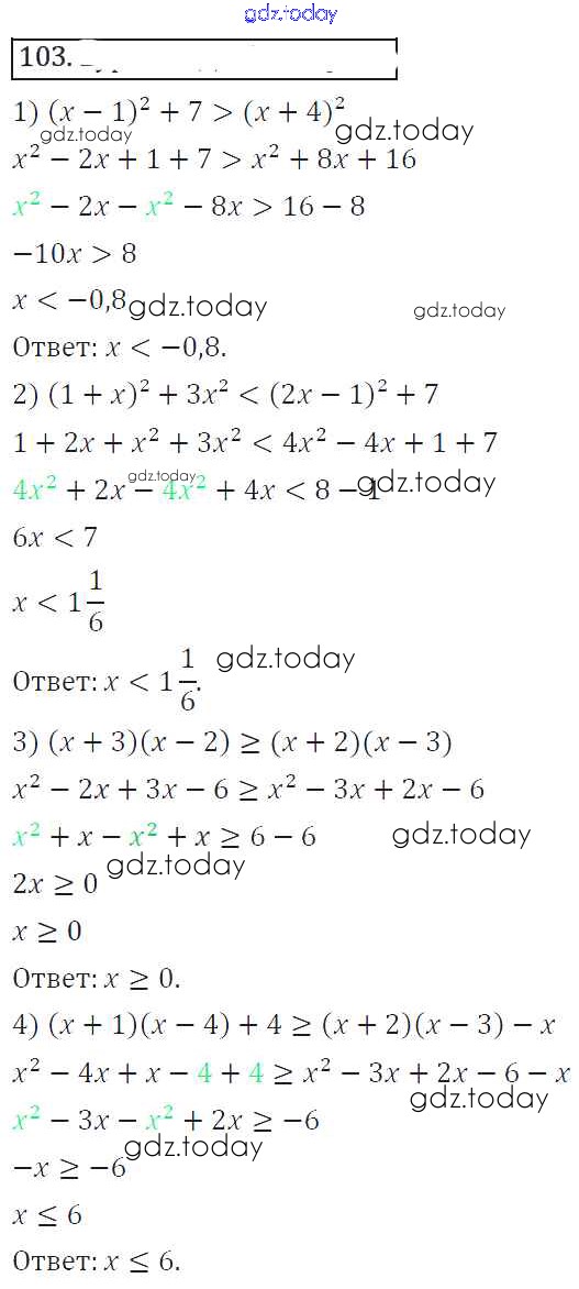 Ответы к Решение к упражнениям 103 Учебнику по Алгебре для 8 класса Колягин, Ткачева Просвещение УМК 2013