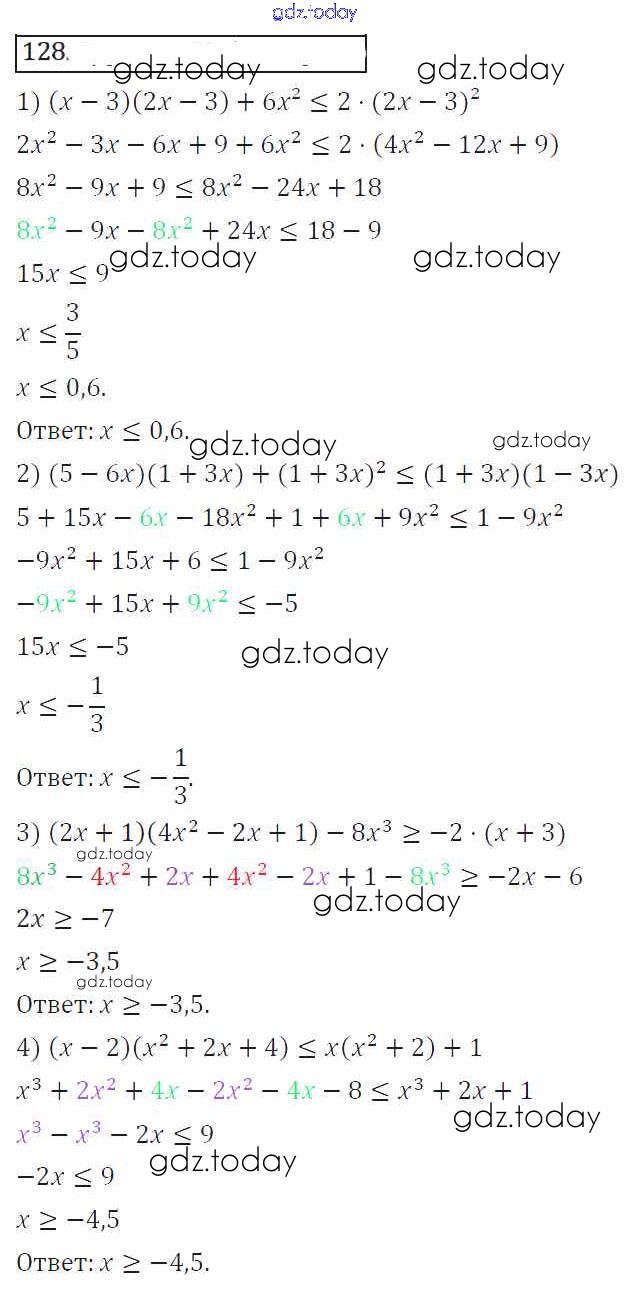 Ответы к Решение к упражнениям 128 Учебнику по Алгебре для 8 класса Колягин, Ткачева Просвещение УМК 2013