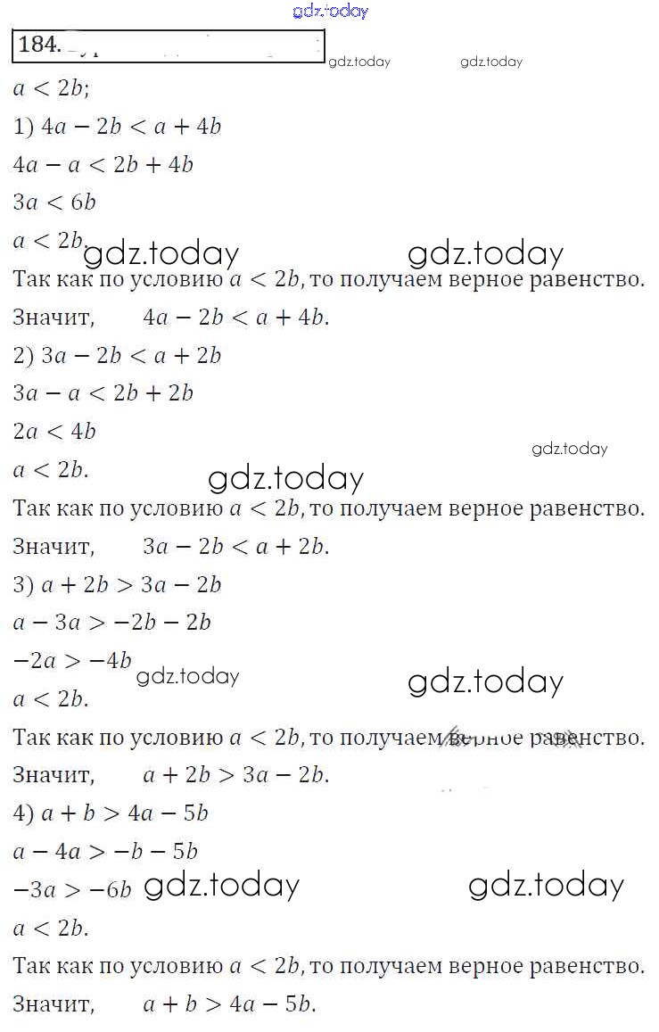Ответы к Решение к упражнениям 184 Учебнику по Алгебре для 8 класса Колягин, Ткачева Просвещение УМК 2013