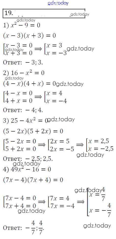 На страницах сайта gdz.today вы найдете учебный и вспомогательный материал, направленный на улучшения знаний школьной программы. ГДЗ - онлайн мир знаний Решение к упражнениям 19 Учебнику по Алгебре для 8 класса Колягин, Ткачева Просвещение УМК 2013