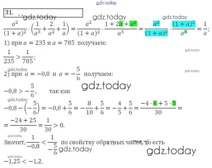 На страницах сайта gdz.today вы найдете учебный и вспомогательный материал, направленный на улучшения знаний школьной программы. ГДЗ - онлайн мир знаний Решение к упражнениям 31 Учебнику по Алгебре для 8 класса Колягин, Ткачева Просвещение УМК 2013