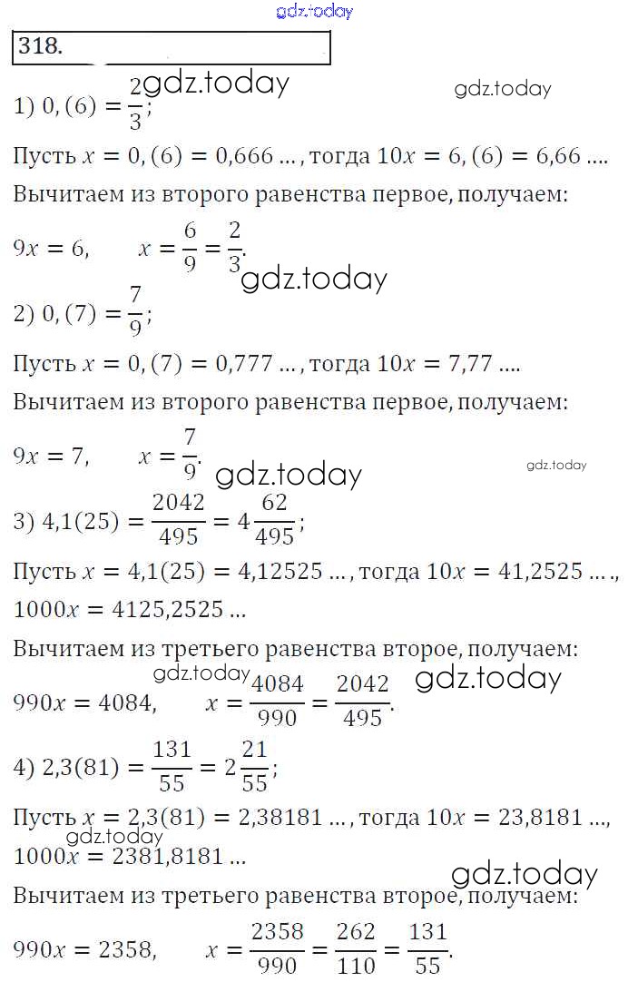 На страницах сайта gdz.today вы найдете учебный и вспомогательный материал, направленный на улучшения знаний школьной программы. ГДЗ - онлайн мир знаний Решение к упражнениям 318 Учебнику по Алгебре для 8 класса Колягин, Ткачева Просвещение УМК 2013