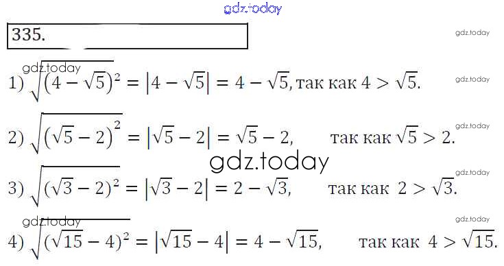 На страницах сайта gdz.today вы найдете учебный и вспомогательный материал, направленный на улучшения знаний школьной программы. ГДЗ - онлайн мир знаний Решение к упражнениям 335 Учебнику по Алгебре для 8 класса Колягин, Ткачева Просвещение УМК 2013