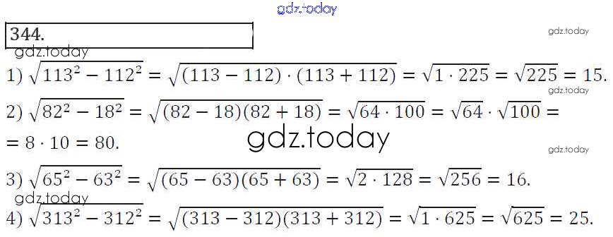 На страницах сайта gdz.today вы найдете учебный и вспомогательный материал, направленный на улучшения знаний школьной программы. ГДЗ - онлайн мир знаний Решение к упражнениям 344 Учебнику по Алгебре для 8 класса Колягин, Ткачева Просвещение УМК 2013