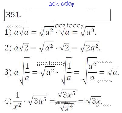 На страницах сайта gdz.today вы найдете учебный и вспомогательный материал, направленный на улучшения знаний школьной программы. ГДЗ - онлайн мир знаний Решение к упражнениям 351 Учебнику по Алгебре для 8 класса Колягин, Ткачева Просвещение УМК 2013