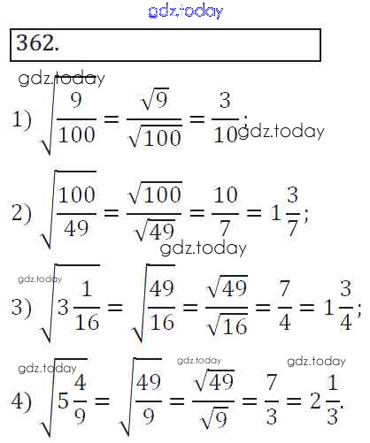 На страницах сайта gdz.today вы найдете учебный и вспомогательный материал, направленный на улучшения знаний школьной программы. ГДЗ - онлайн мир знаний Решение к упражнениям 362 Учебнику по Алгебре для 8 класса Колягин, Ткачева Просвещение УМК 2013