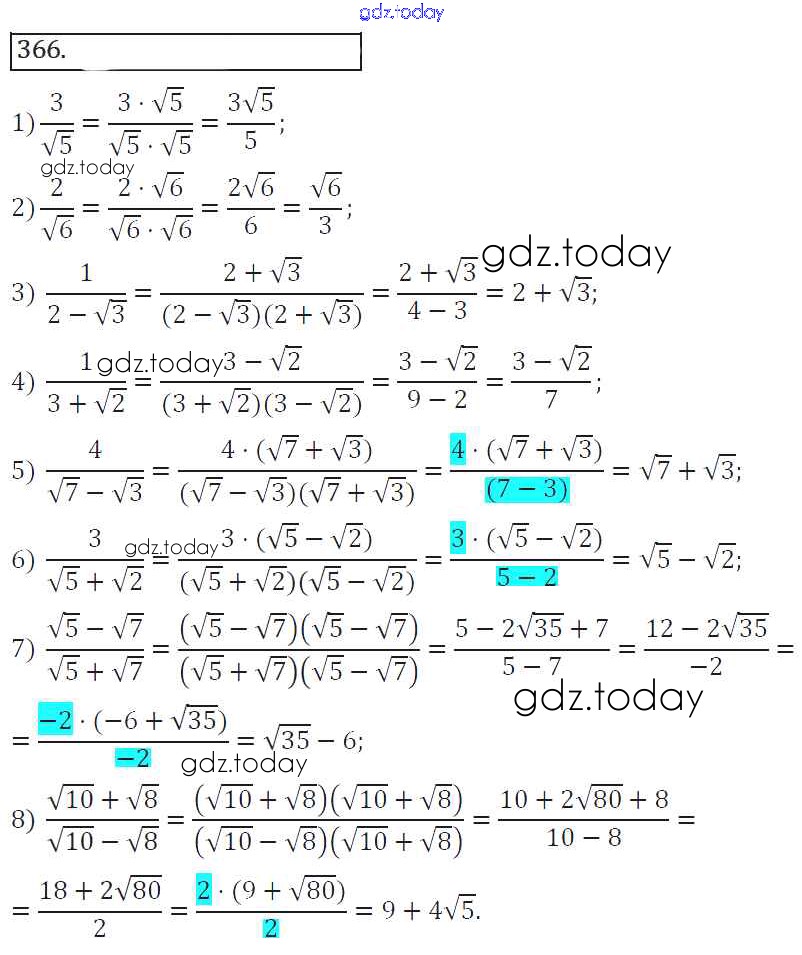 На страницах сайта gdz.today вы найдете учебный и вспомогательный материал, направленный на улучшения знаний школьной программы. ГДЗ - онлайн мир знаний Решение к упражнениям 366 Учебнику по Алгебре для 8 класса Колягин, Ткачева Просвещение УМК 2013