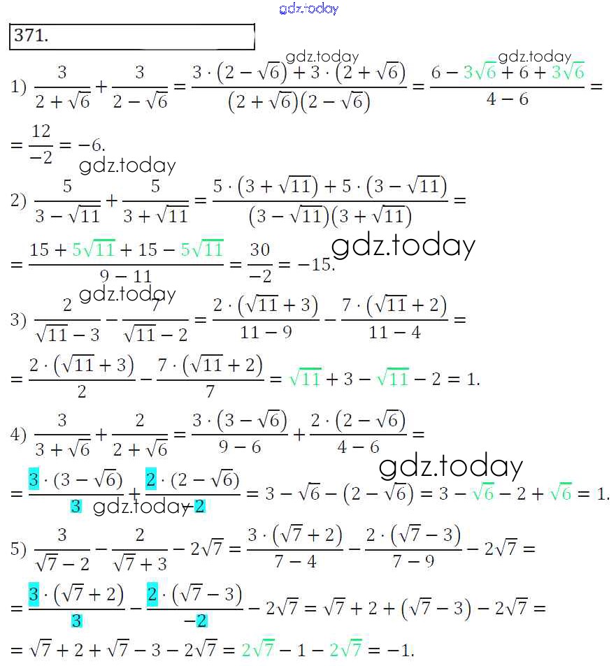 На страницах сайта gdz.today вы найдете учебный и вспомогательный материал, направленный на улучшения знаний школьной программы. ГДЗ - онлайн мир знаний Решение к упражнениям 371 Учебнику по Алгебре для 8 класса Колягин, Ткачева Просвещение УМК 2013