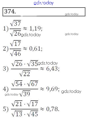 На страницах сайта gdz.today вы найдете учебный и вспомогательный материал, направленный на улучшения знаний школьной программы. ГДЗ - онлайн мир знаний Решение к упражнениям 374 Учебнику по Алгебре для 8 класса Колягин, Ткачева Просвещение УМК 2013