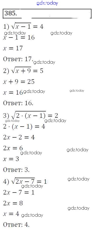 Ответы к Решение к упражнениям 385 Учебнику по Алгебре для 8 класса Колягин, Ткачева Просвещение УМК 2013