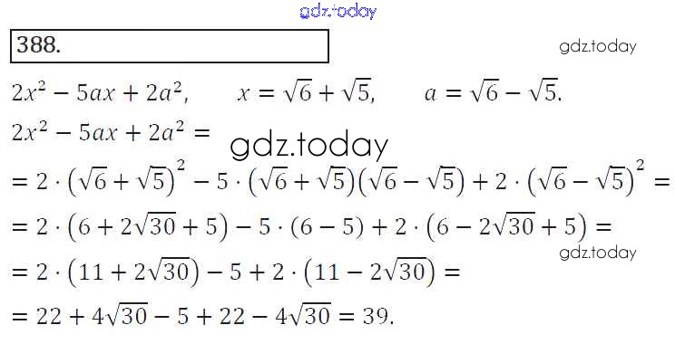 На страницах сайта gdz.today вы найдете учебный и вспомогательный материал, направленный на улучшения знаний школьной программы. ГДЗ - онлайн мир знаний Решение к упражнениям 388 Учебнику по Алгебре для 8 класса Колягин, Ткачева Просвещение УМК 2013