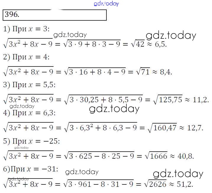 На страницах сайта gdz.today вы найдете учебный и вспомогательный материал, направленный на улучшения знаний школьной программы. ГДЗ - онлайн мир знаний Решение к упражнениям 396 Учебнику по Алгебре для 8 класса Колягин, Ткачева Просвещение УМК 2013
