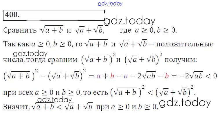 На страницах сайта gdz.today вы найдете учебный и вспомогательный материал, направленный на улучшения знаний школьной программы. ГДЗ - онлайн мир знаний Решение к упражнениям 400 Учебнику по Алгебре для 8 класса Колягин, Ткачева Просвещение УМК 2013