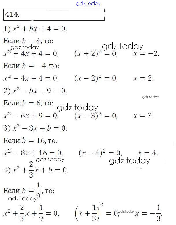 На страницах сайта gdz.today вы найдете учебный и вспомогательный материал, направленный на улучшения знаний школьной программы. ГДЗ - онлайн мир знаний Решение к упражнениям 414 Учебнику по Алгебре для 8 класса Колягин, Ткачева Просвещение УМК 2013