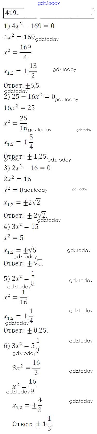 На страницах сайта gdz.today вы найдете учебный и вспомогательный материал, направленный на улучшения знаний школьной программы. ГДЗ - онлайн мир знаний Решение к упражнениям 419 Учебнику по Алгебре для 8 класса Колягин, Ткачева Просвещение УМК 2013