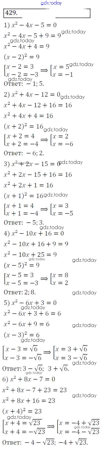 Ответы к Решение к упражнениям 429 Учебнику по Алгебре для 8 класса Колягин, Ткачева Просвещение УМК 2013