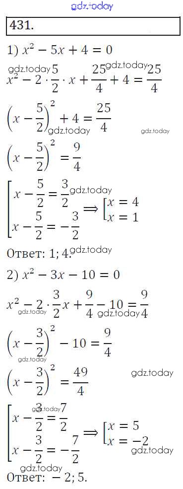 На страницах сайта gdz.today вы найдете учебный и вспомогательный материал, направленный на улучшения знаний школьной программы. ГДЗ - онлайн мир знаний Решение к упражнениям 431 Учебнику по Алгебре для 8 класса Колягин, Ткачева Просвещение УМК 2013