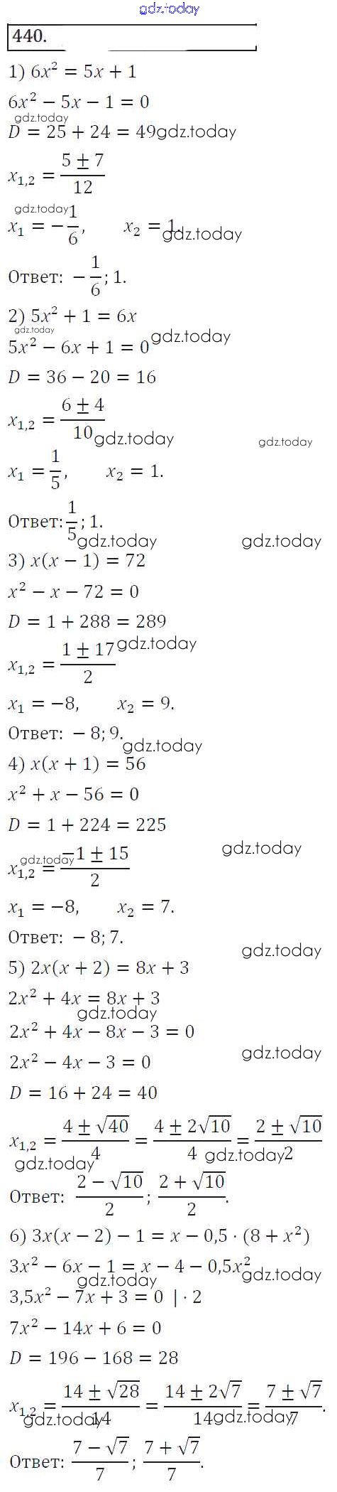 Ответы к Решение к упражнениям 440 Учебнику по Алгебре для 8 класса Колягин, Ткачева Просвещение УМК 2013