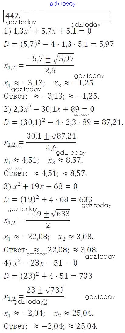 На страницах сайта gdz.today вы найдете учебный и вспомогательный материал, направленный на улучшения знаний школьной программы. ГДЗ - онлайн мир знаний Решение к упражнениям 447 Учебнику по Алгебре для 8 класса Колягин, Ткачева Просвещение УМК 2013