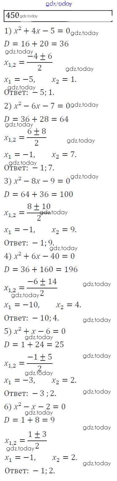 На страницах сайта gdz.today вы найдете учебный и вспомогательный материал, направленный на улучшения знаний школьной программы. ГДЗ - онлайн мир знаний Решение к упражнениям 450 Учебнику по Алгебре для 8 класса Колягин, Ткачева Просвещение УМК 2013