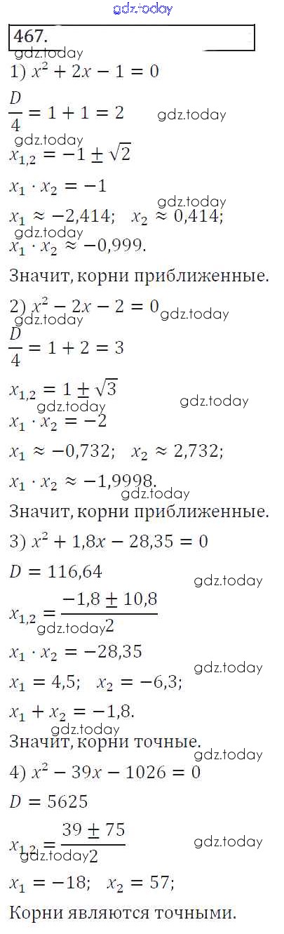На страницах сайта gdz.today вы найдете учебный и вспомогательный материал, направленный на улучшения знаний школьной программы. ГДЗ - онлайн мир знаний Решение к упражнениям 467 Учебнику по Алгебре для 8 класса Колягин, Ткачева Просвещение УМК 2013