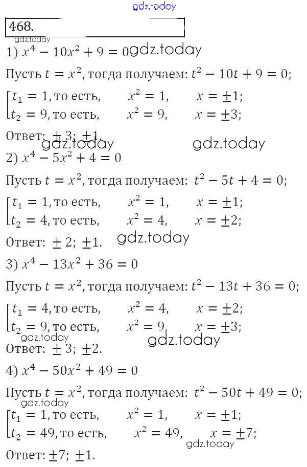 На страницах сайта gdz.today вы найдете учебный и вспомогательный материал, направленный на улучшения знаний школьной программы. ГДЗ - онлайн мир знаний Решение к упражнениям 468 Учебнику по Алгебре для 8 класса Колягин, Ткачева Просвещение УМК 2013