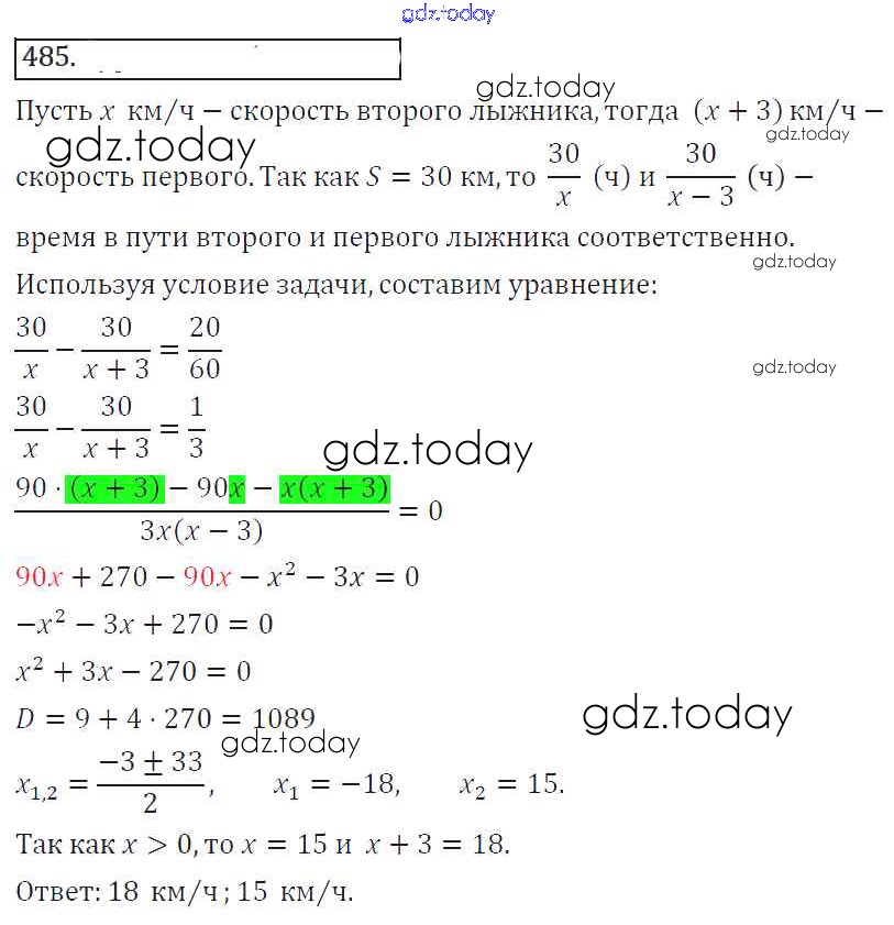 На страницах сайта gdz.today вы найдете учебный и вспомогательный материал, направленный на улучшения знаний школьной программы. ГДЗ - онлайн мир знаний Решение к упражнениям 485 Учебнику по Алгебре для 8 класса Колягин, Ткачева Просвещение УМК 2013
