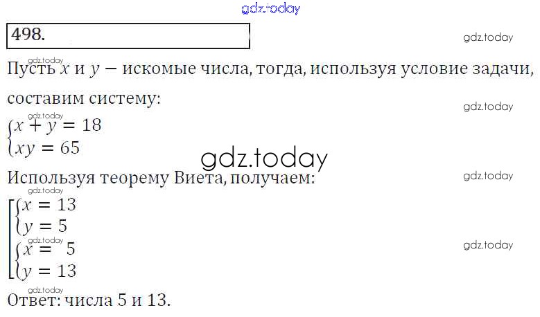 На страницах сайта gdz.today вы найдете учебный и вспомогательный материал, направленный на улучшения знаний школьной программы. ГДЗ - онлайн мир знаний Решение к упражнениям 498 Учебнику по Алгебре для 8 класса Колягин, Ткачева Просвещение УМК 2013
