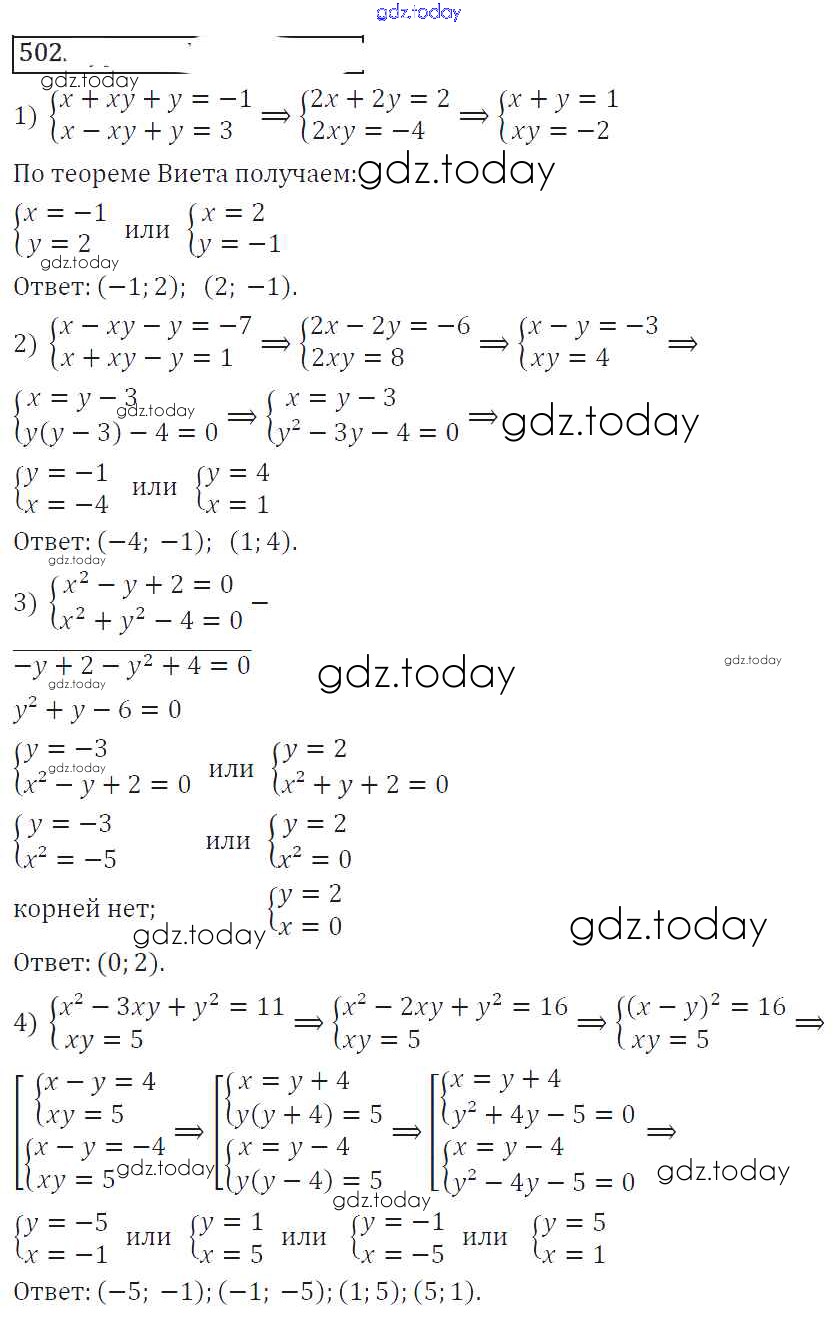 Ответы к Решение к упражнениям 502 Учебнику по Алгебре для 8 класса Колягин, Ткачева Просвещение УМК 2013