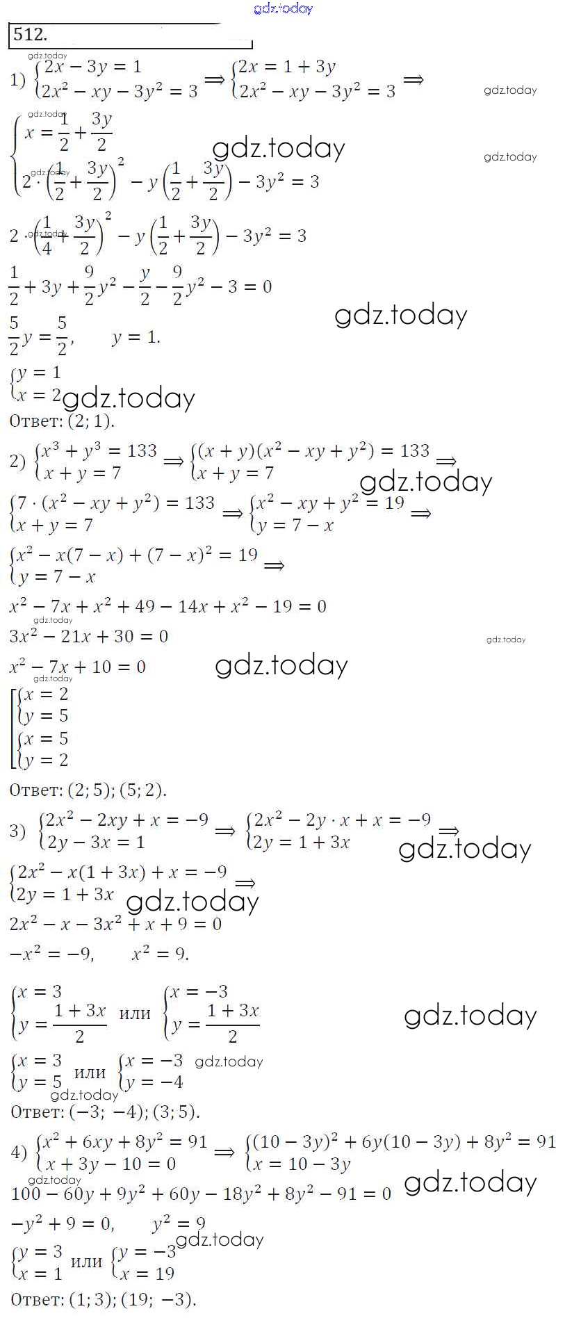 Ответы к Решение к упражнениям 512 Учебнику по Алгебре для 8 класса Колягин, Ткачева Просвещение УМК 2013