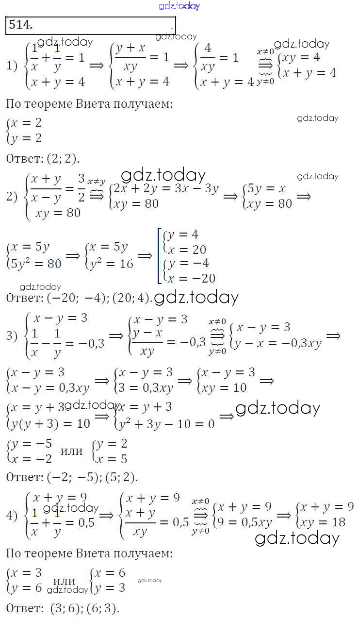 Ответы к Решение к упражнениям 514 Учебнику по Алгебре для 8 класса Колягин, Ткачева Просвещение УМК 2013
