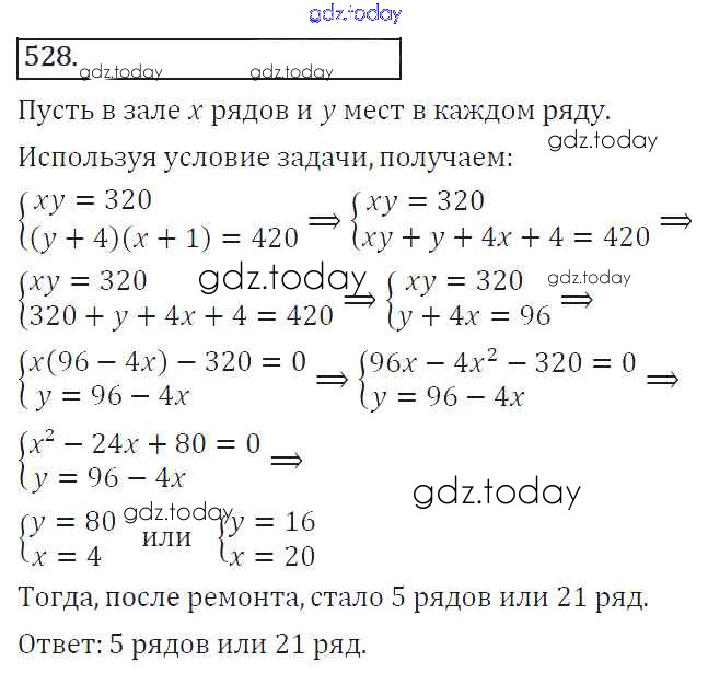 Ответы к Решение к упражнениям 528 Учебнику по Алгебре для 8 класса Колягин, Ткачева Просвещение УМК 2013