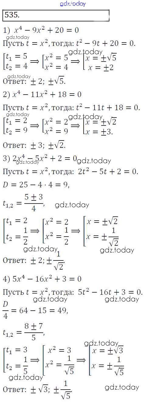 Ответы к Решение к упражнениям 535 Учебнику по Алгебре для 8 класса Колягин, Ткачева Просвещение УМК 2013