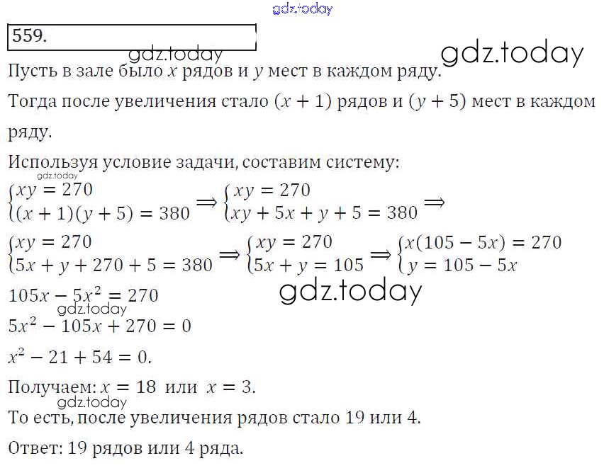 На страницах сайта gdz.today вы найдете учебный и вспомогательный материал, направленный на улучшения знаний школьной программы. ГДЗ - онлайн мир знаний Решение к упражнениям 559 Учебнику по Алгебре для 8 класса Колягин, Ткачева Просвещение УМК 2013