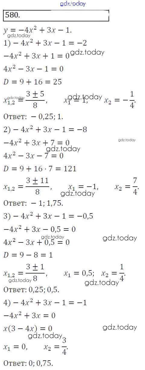 Ответы к Решение к упражнениям 580 Учебнику по Алгебре для 8 класса Колягин, Ткачева Просвещение УМК 2013