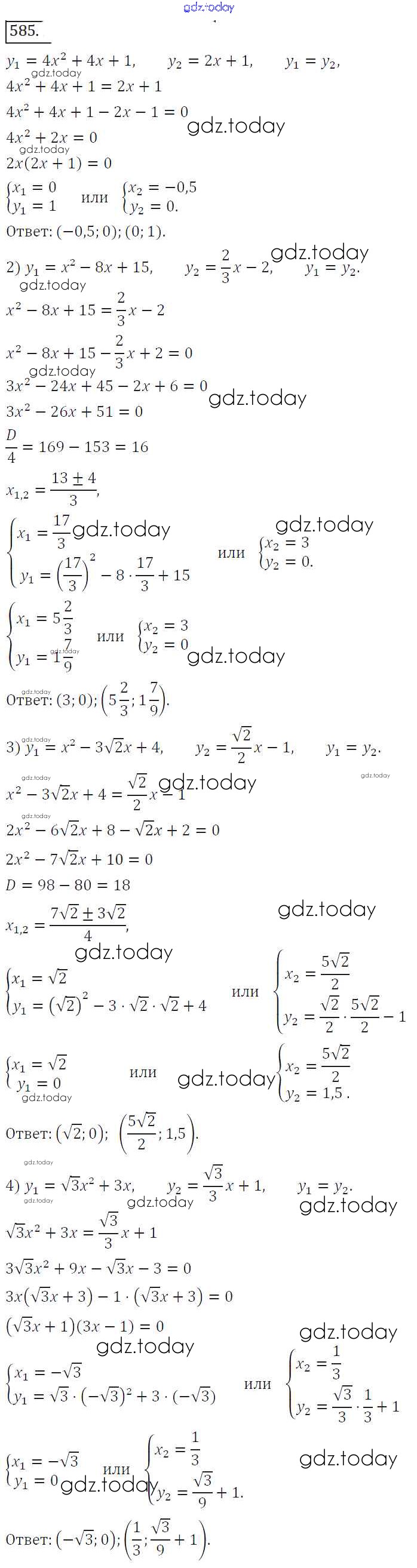 На страницах сайта gdz.today вы найдете учебный и вспомогательный материал, направленный на улучшения знаний школьной программы. ГДЗ - онлайн мир знаний Решение к упражнениям 585 Учебнику по Алгебре для 8 класса Колягин, Ткачева Просвещение УМК 2013