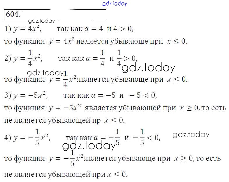 На страницах сайта gdz.today вы найдете учебный и вспомогательный материал, направленный на улучшения знаний школьной программы. ГДЗ - онлайн мир знаний Решение к упражнениям 604 Учебнику по Алгебре для 8 класса Колягин, Ткачева Просвещение УМК 2013