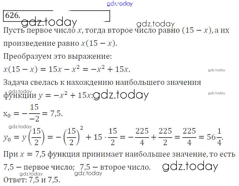 На страницах сайта gdz.today вы найдете учебный и вспомогательный материал, направленный на улучшения знаний школьной программы. ГДЗ - онлайн мир знаний Решение к упражнениям 626 Учебнику по Алгебре для 8 класса Колягин, Ткачева Просвещение УМК 2013