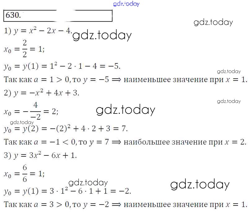 На страницах сайта gdz.today вы найдете учебный и вспомогательный материал, направленный на улучшения знаний школьной программы. ГДЗ - онлайн мир знаний Решение к упражнениям 630 Учебнику по Алгебре для 8 класса Колягин, Ткачева Просвещение УМК 2013