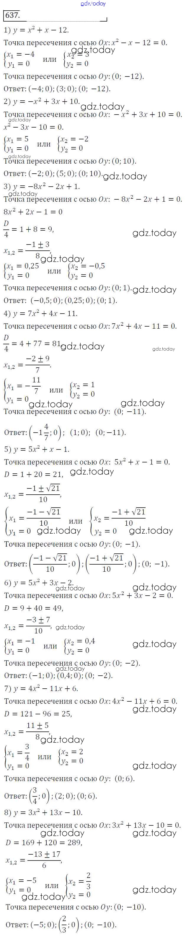 На страницах сайта gdz.today вы найдете учебный и вспомогательный материал, направленный на улучшения знаний школьной программы. ГДЗ - онлайн мир знаний Решение к упражнениям 637 Учебнику по Алгебре для 8 класса Колягин, Ткачева Просвещение УМК 2013