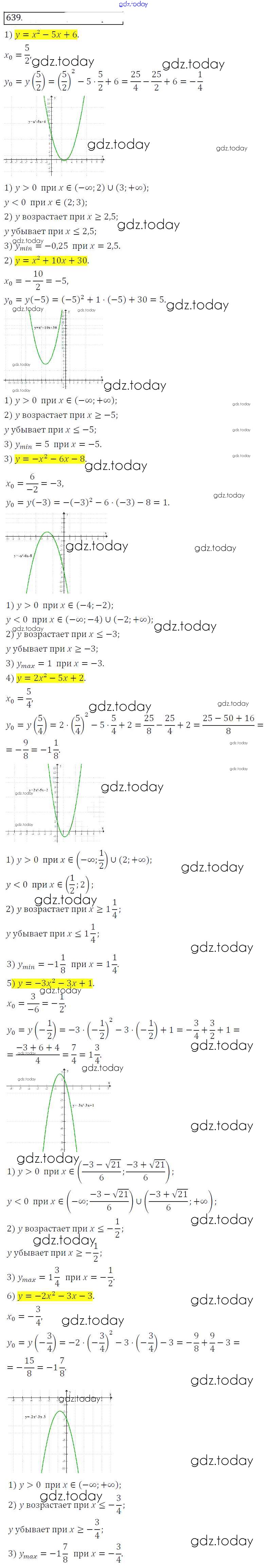 Ответы к Решение к упражнениям 639 Учебнику по Алгебре для 8 класса Колягин, Ткачева Просвещение УМК 2013