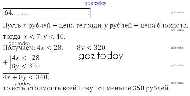 На страницах сайта gdz.today вы найдете учебный и вспомогательный материал, направленный на улучшения знаний школьной программы. ГДЗ - онлайн мир знаний Решение к упражнениям 64 Учебнику по Алгебре для 8 класса Колягин, Ткачева Просвещение УМК 2013