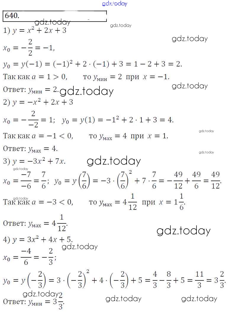 На страницах сайта gdz.today вы найдете учебный и вспомогательный материал, направленный на улучшения знаний школьной программы. ГДЗ - онлайн мир знаний Решение к упражнениям 640 Учебнику по Алгебре для 8 класса Колягин, Ткачева Просвещение УМК 2013