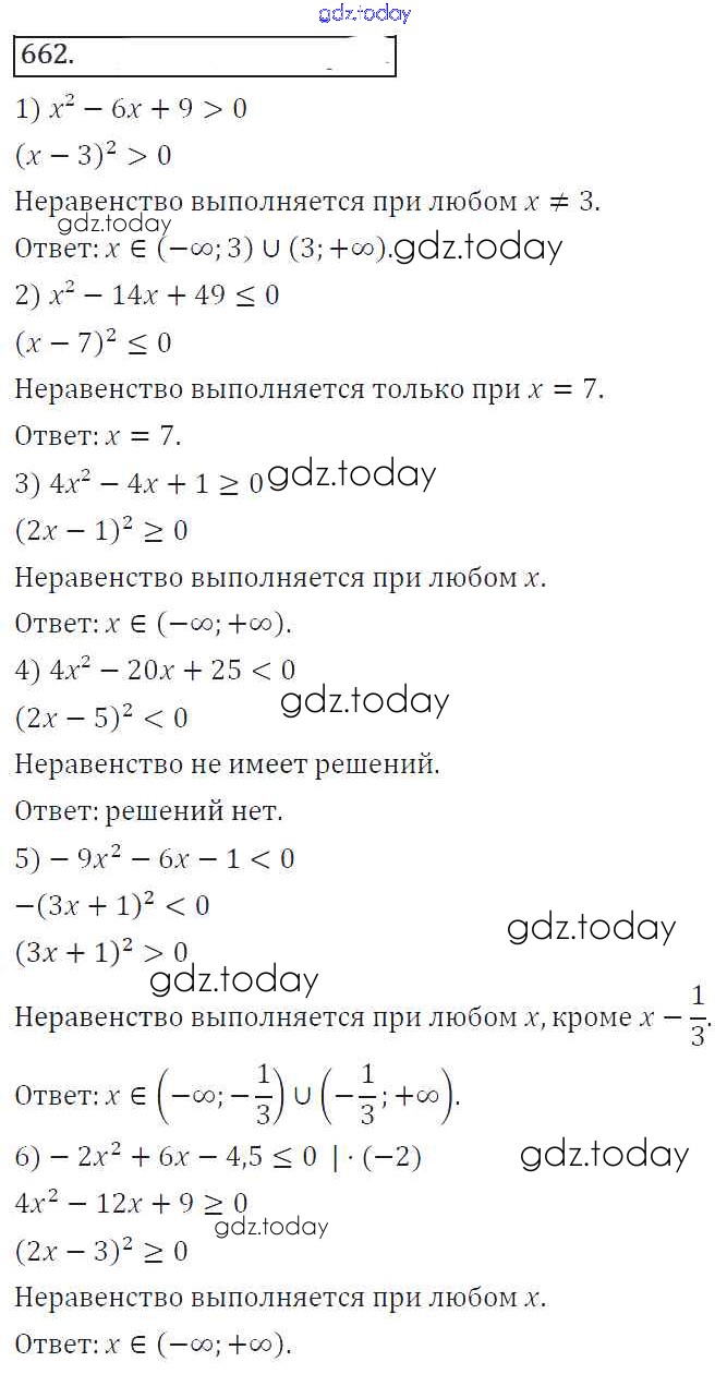 Ответы к Решение к упражнениям 662 Учебнику по Алгебре для 8 класса Колягин, Ткачева Просвещение УМК 2013
