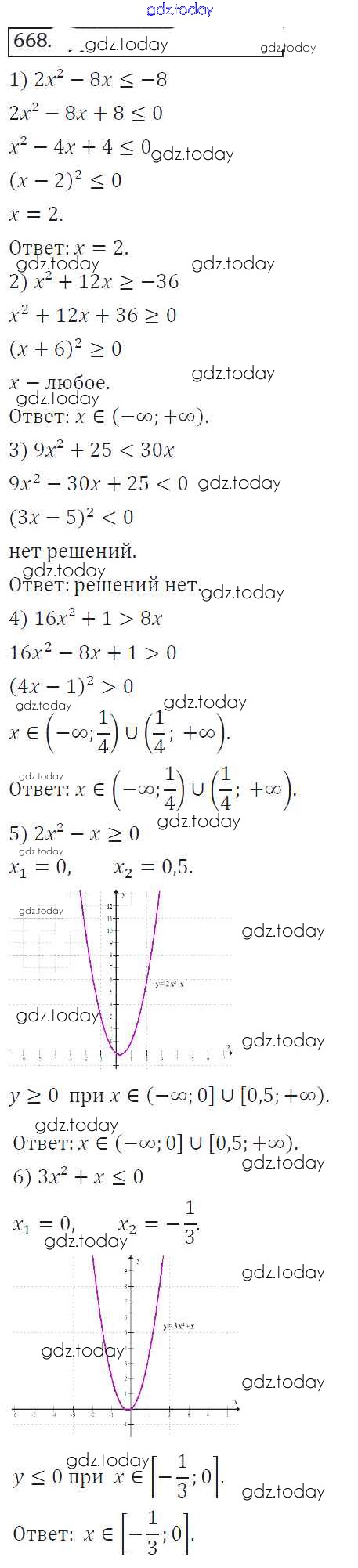 Ответы к Решение к упражнениям 668 Учебнику по Алгебре для 8 класса Колягин, Ткачева Просвещение УМК 2013