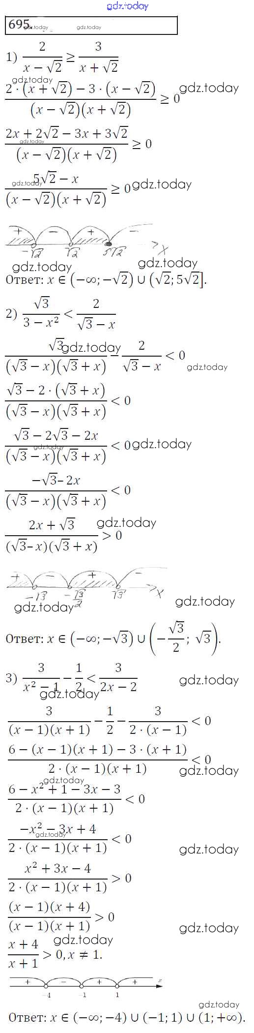 На страницах сайта gdz.today вы найдете учебный и вспомогательный материал, направленный на улучшения знаний школьной программы. ГДЗ - онлайн мир знаний Решение к упражнениям 695 Учебнику по Алгебре для 8 класса Колягин, Ткачева Просвещение УМК 2013